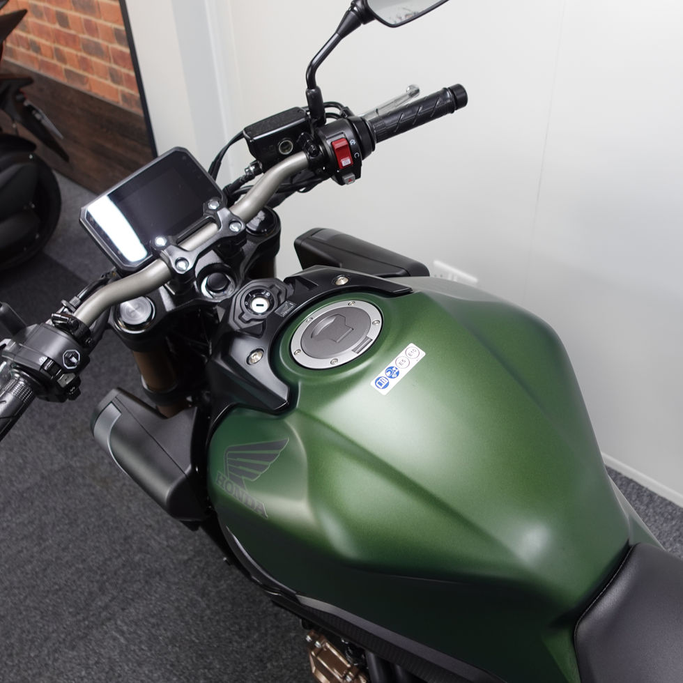 We are pleased to present you with this wonderful Honda CB 650 R. It is a 2025 model in the stunning Khaki Green colour and is a genuine 1 owner bike with low miles and it is the remarkable E-Clutch variant. This fantastic system enables you to ride the bike like normal but with the E-Clutch turned on it becomes a semi-auto as you have the ability to ride the bike completely without the use of the clutch. The quick shifter gives you seamless gear changes.