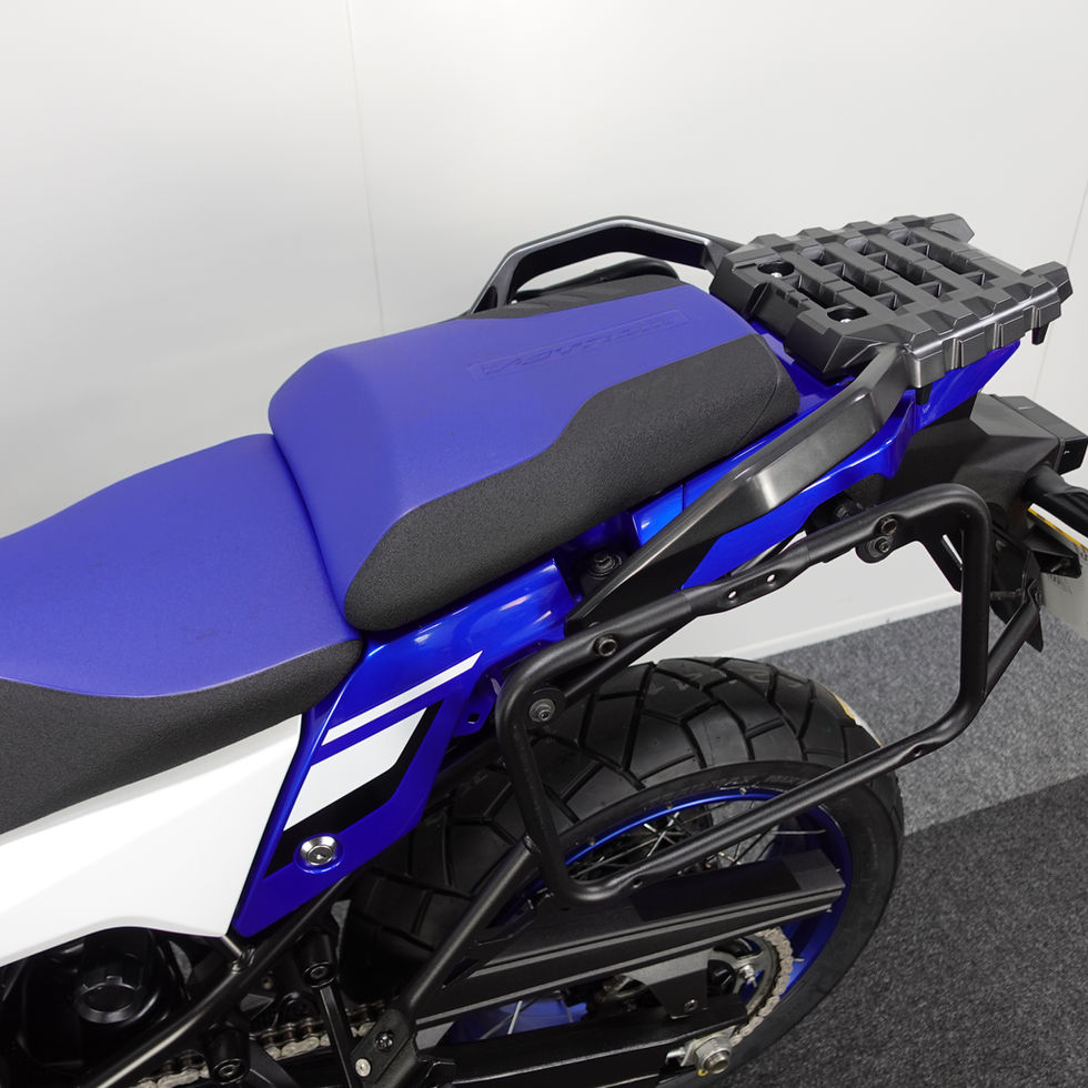 Here is our Suzuki V-Strom 1050 DE. It is a 2024 model with low miles. As it is the DE it benefits from the lovely spoked wheels, longer suspension travel and larger foot pegs. It also includes a lovely TFT display, cruise control, multiple riding mode options, quick shift, hill hold, switchable ABS. It has also had a centre stand, heated grips and larger screen added.