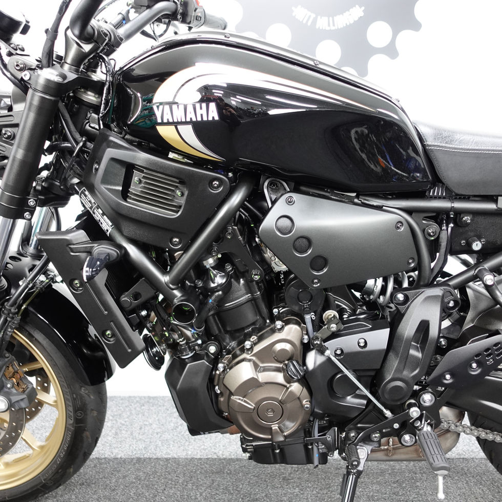 Here is our lovely Yamaha XSR 700. It is a late November 24/74 reg with low miles and 1 genuine owner from new and it looks stunning in the black and gold colour scheme.